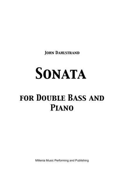 John Dahlstrand's Sonata is an 18-minute work for double bass & piano in e minor. The 3 movements are: Allegro Moderato, Andante, Allegro Furioso. The 2nd movement is also published as Andante for Double Bass & Harp. This piece is intended for advanced players.