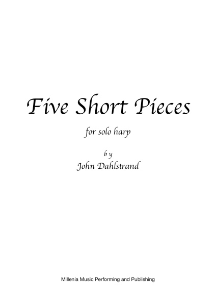 Five Short Pieces pour harpe seule de John Dahlstrand: Prologue, Waltz, Prière, Blague, Epilogue (Passacaille). Ces pièces brèves sont écrites pour les harpistes de niveau débutant à intermédiaire jouant la harpe à pédales. Certaines peuvent être jouées sur harpe sans pédales.