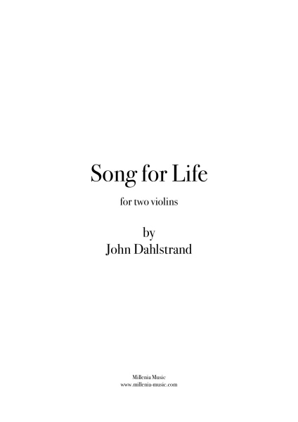Song for Life est un duo pour 2 violons écrit par John Dahlstrand pour ses amis Laura & Toru et dédié à la vie. L'œuvre est basée sur le chant grégorien Veni Creator et la création a eu lieu à Hiroshima au Japon. Ce morceau convient à des joueurs de niveau intermédiaire.